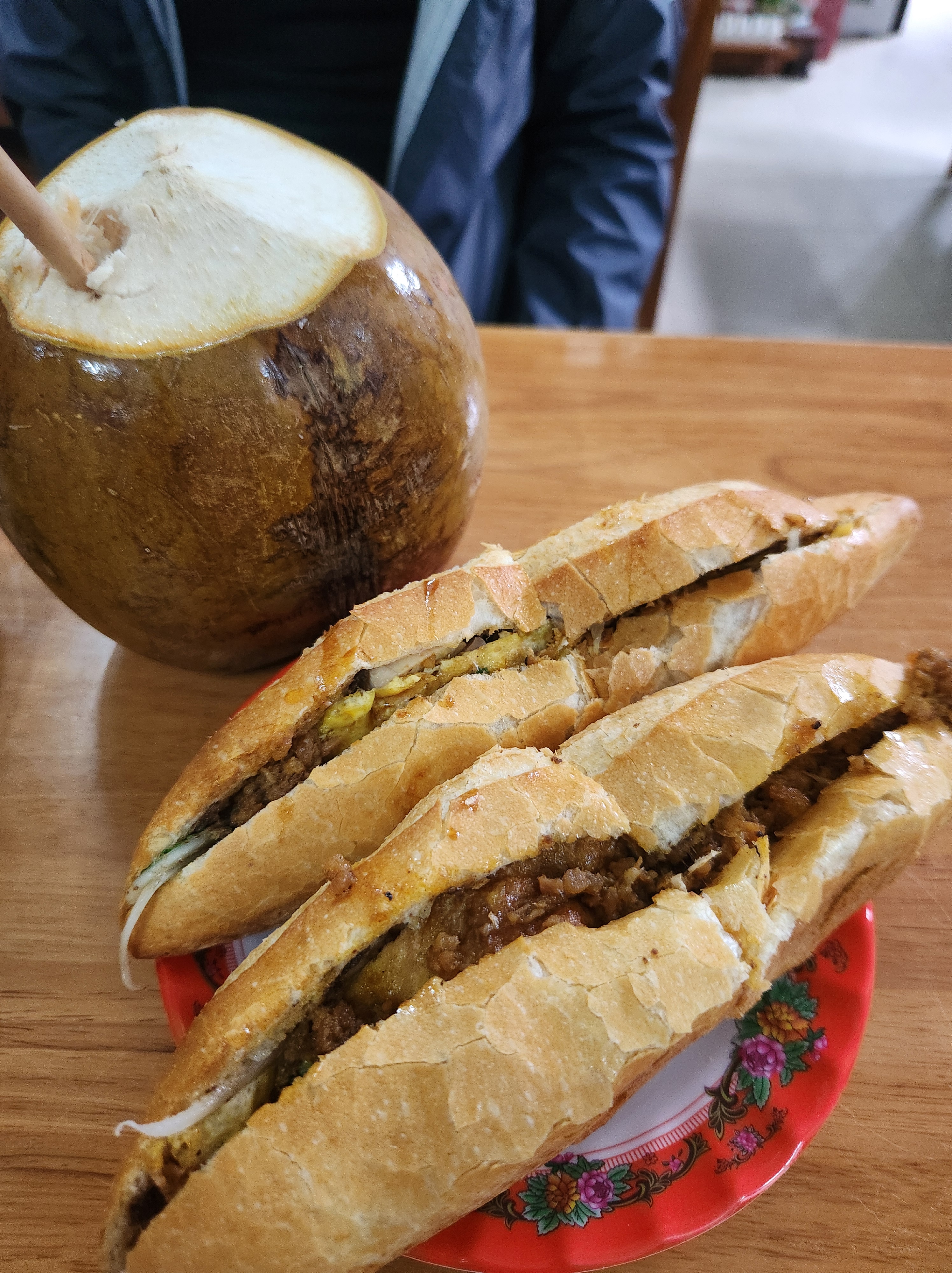 We took the Giant Ibis bus, a popular transportation company in SE Asia. And to my surprise, it was a great experience. The seats were large and comfortable, and the driver offered water and snacks. The bus stopped every 2 hours for restroom breaks so the ride didn’t feel long at all. C also caught a stomach bug that morning – vomiting a couple times before leaving HCMC 😓- so it was a relief that he could just rest on the bus. (Luckily his nausea stopped once we departed too.)