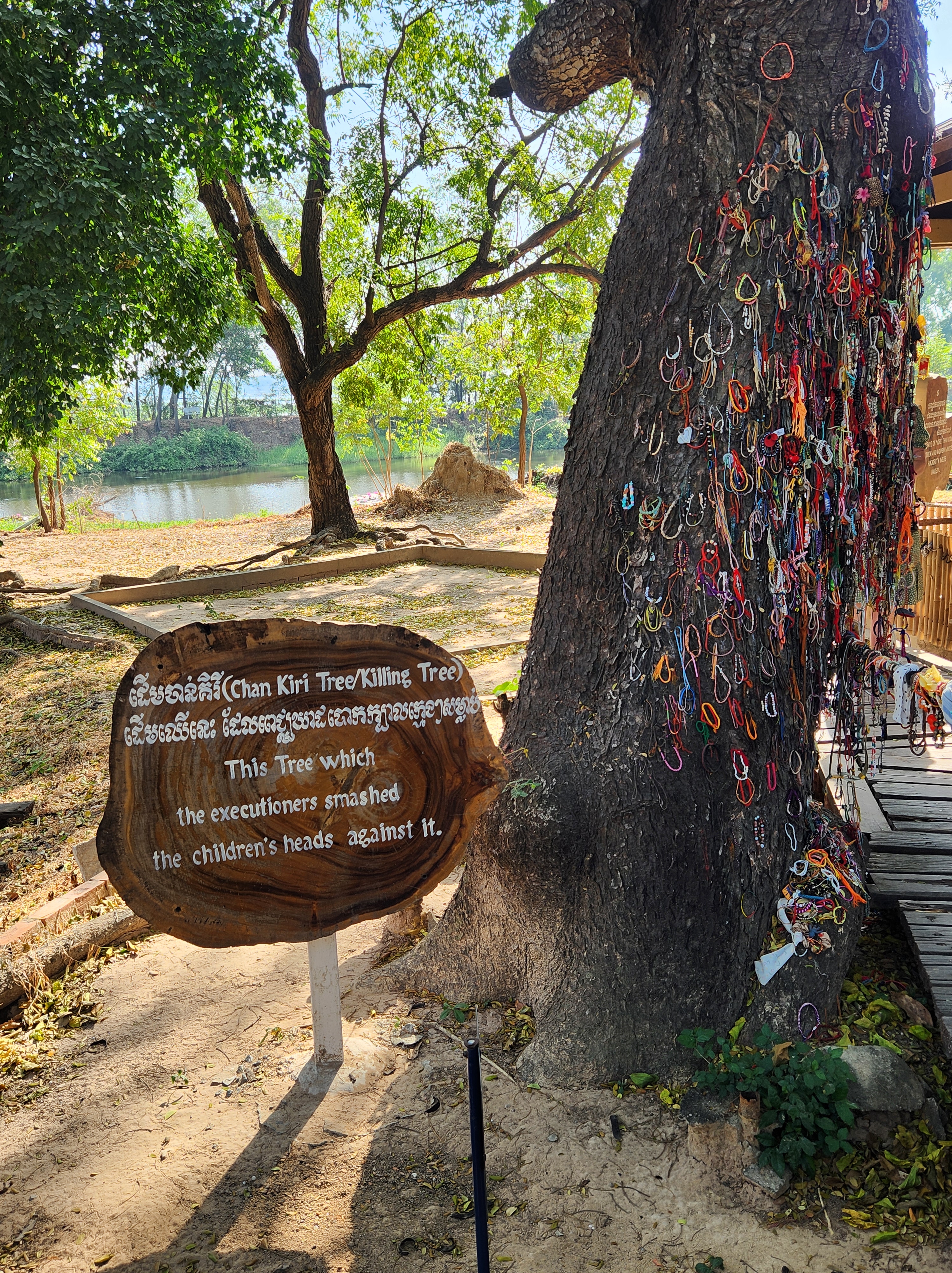 Many prisoners from torture prisons like Tuol Sleng were taken to the Killing Fields, where they were brutally executed. At a quick glance, the Killing Fields look like a nice, serene park but there, babies’ heads were smashed into trees (often in front of their mothers), and women and men were killed with blunt objects, slashed with knives, etc. in order to save bullets. We rented the audio guide, and it was absolutely gut-wrenching to hear what happened at the Killing Fields.
