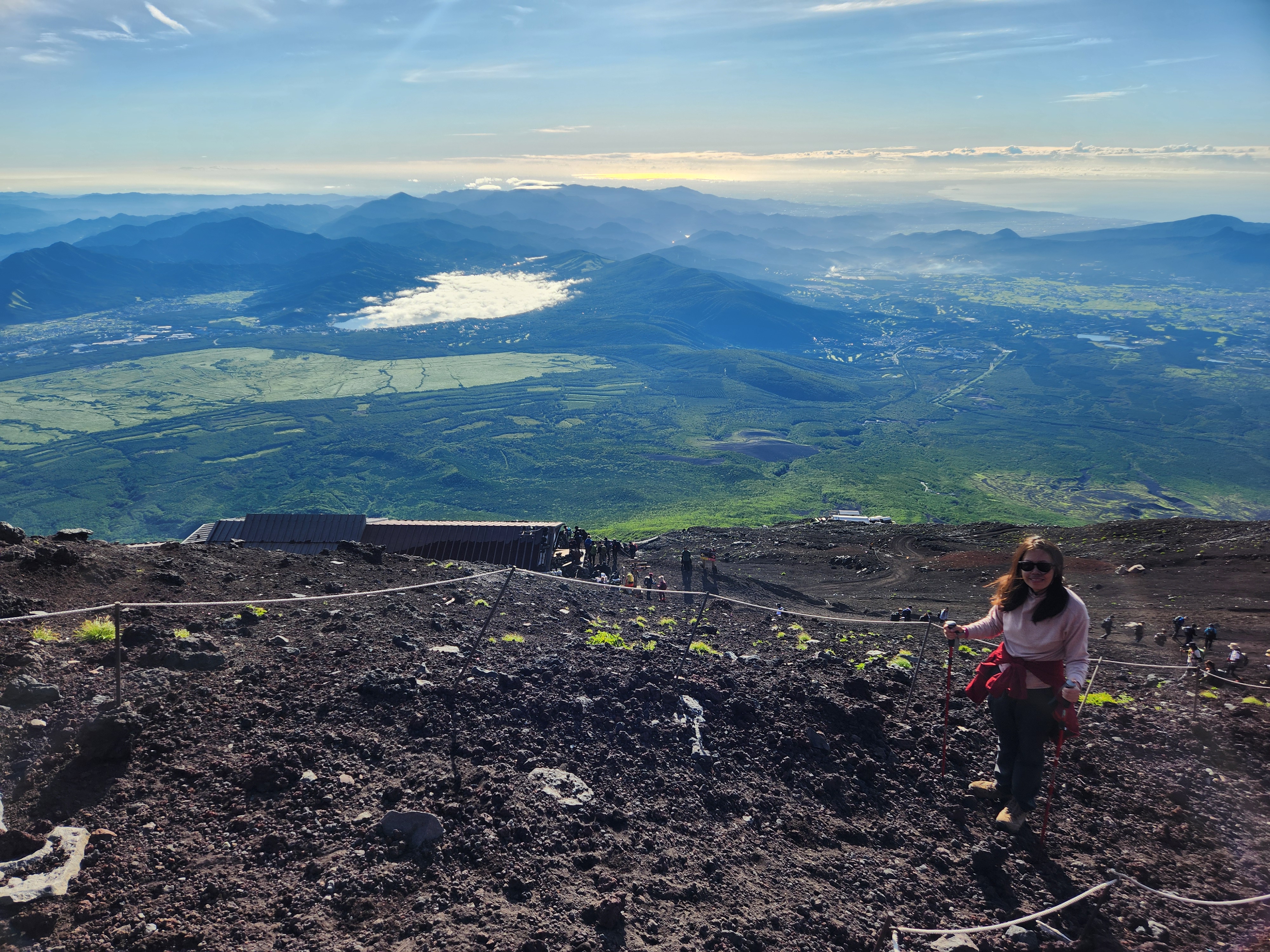 We’ve seen many sunrises and never felt that it was worth getting up at 2-3am so we also skipped it on Fuji. While the other hikers in our hut left early, we got up at 5am and were the last to check out. Still, we were able to catch the sunrise from our hut and it was lovely. (Still not worth getting up early though. 😅)