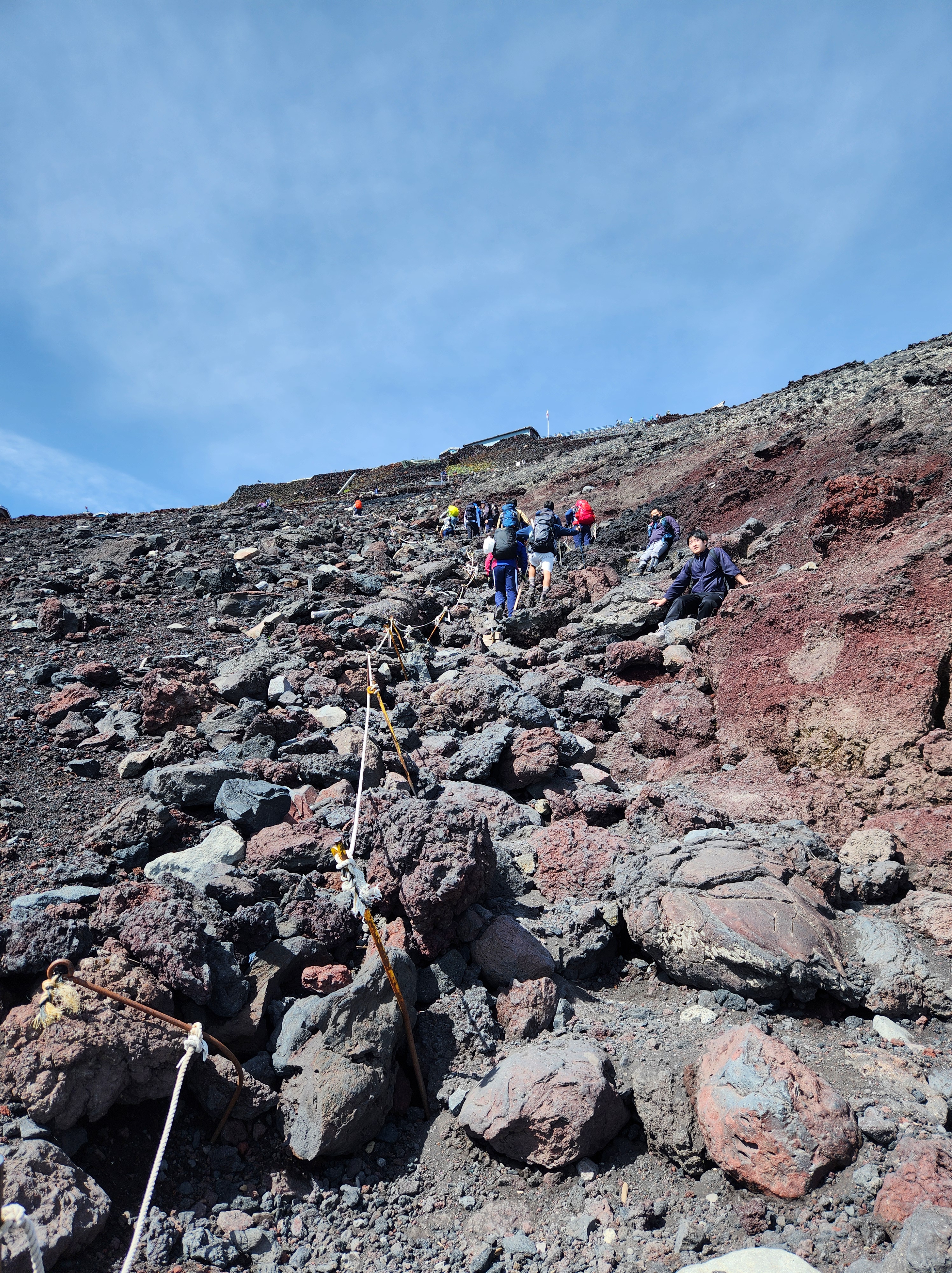 I’ll be honest, it was not easy for me to get up to our hut. 😅 Mt. Fuji is famous for its switchbacks, where the trails zigzag across the slopes instead of going straight up. While this makes the climb more manageable, it also made the uphill feel endless. I’ve hiked many steep trails before, but usually after a stretch of climbing you hit some flat ground to catch your breath. On Fuji, it’s steep the ENTIRE way, and the higher elevation makes every step even harder. I hiked up very slowly (probably a little too slowly) but thankfully Baba stayed with me for support.