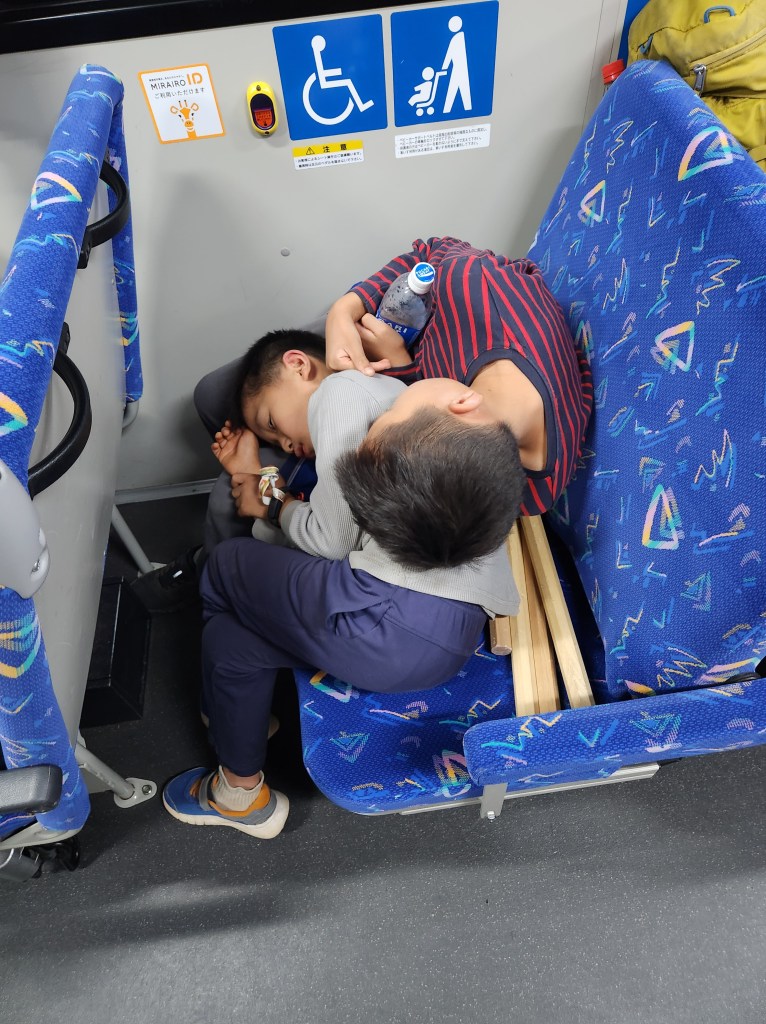 We had also planned to go to Legoland Japan for O’s birthday. We were careful to book tickets for Legoland Resort (the full theme park), not the Legoland Discovery Center (the smaller indoor version). The day before while checking the route, we realized it would take us THREE hours by train to get there. (Why we didn’t notice this earlier, I have no idea.) But since it was O’s birthday and we already had the tickets, we decided to make the trek anyway.