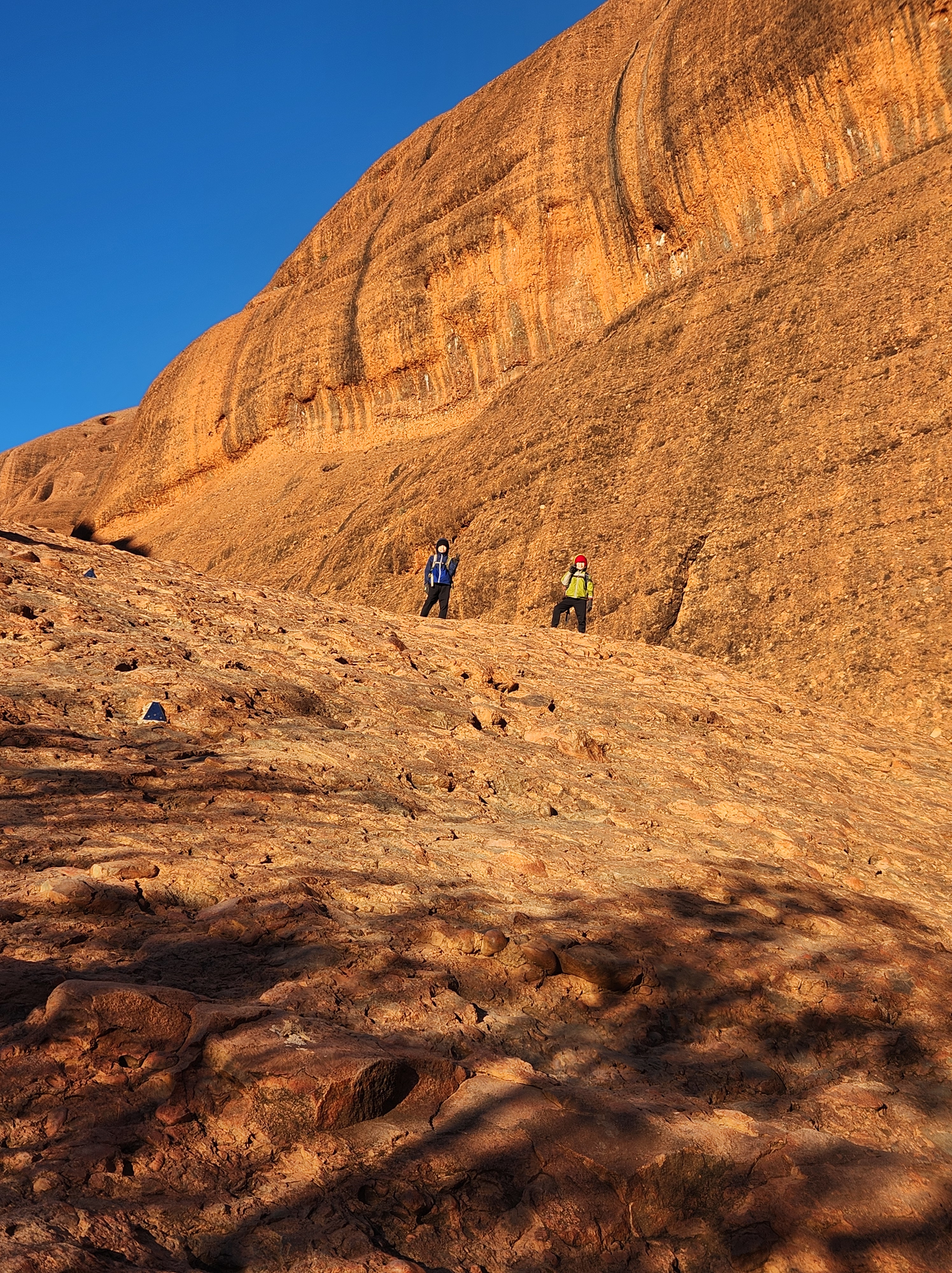 During our stay in Uluru, we saw the rock countless times. Honestly, at first I shrugged and thought, “Eh, it’s just a rock.” Despite knowing its deep cultural and historical significance, it didn’t strike me as particularly spectacular. But then we saw Uluru at sunset. As the sun sank lower, the dull brown surface changed into a fiery red, glowing as if lit from within. In that moment, it felt otherworldly. (Picture on the left is Uluru during sunset, and right is during sunrise.)