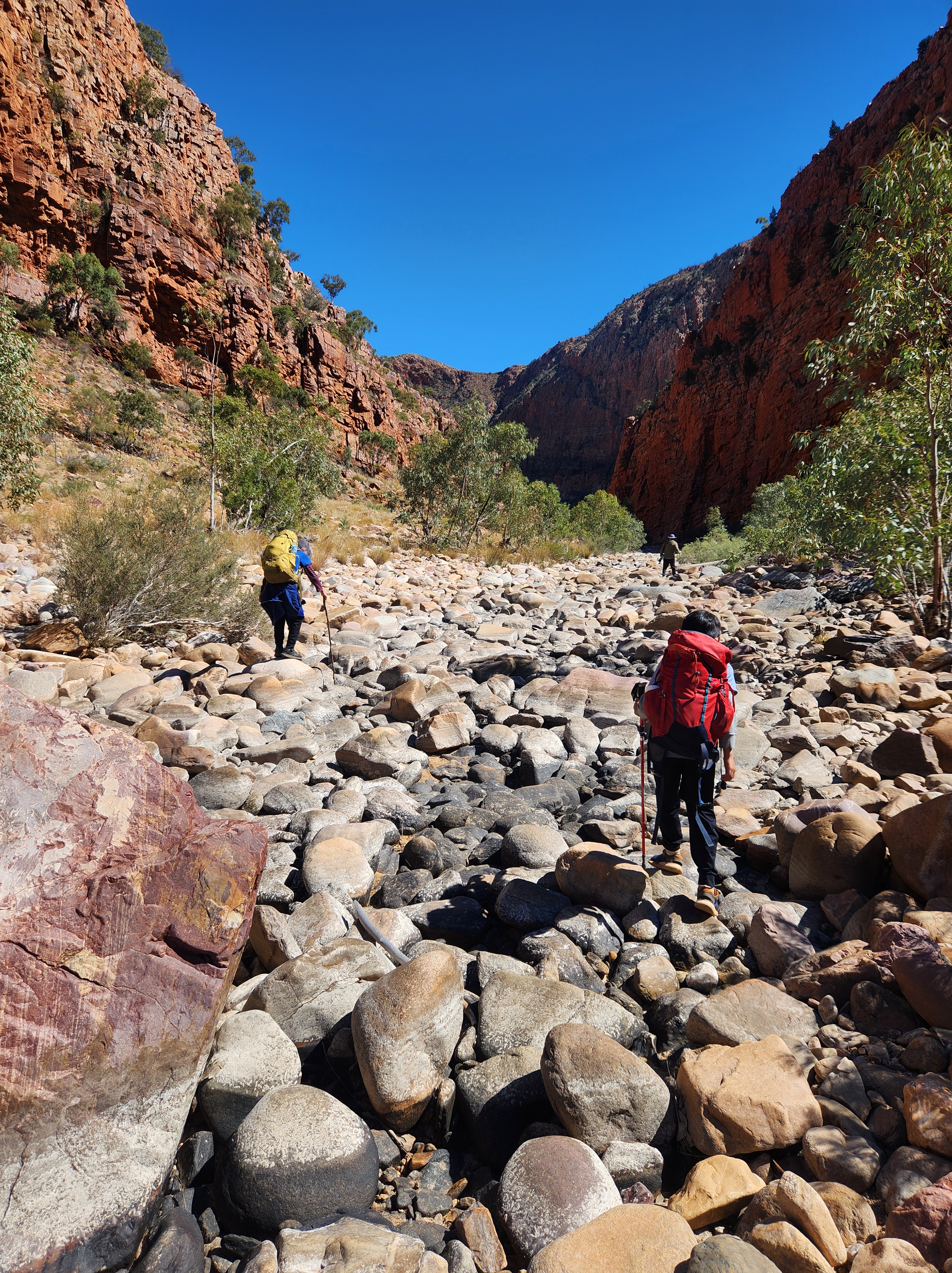 On our last day in the Outback, we drove to the West MacDonnell Ranges, which is a huge mountain range spanning over 400 miles. There are popular multi-day treks there but we picked a half-day hike at Ormiston Pound. The trail was wonderfully varied — we walked through grasslands, scrambled over huge boulders, and even waded across a small pond.