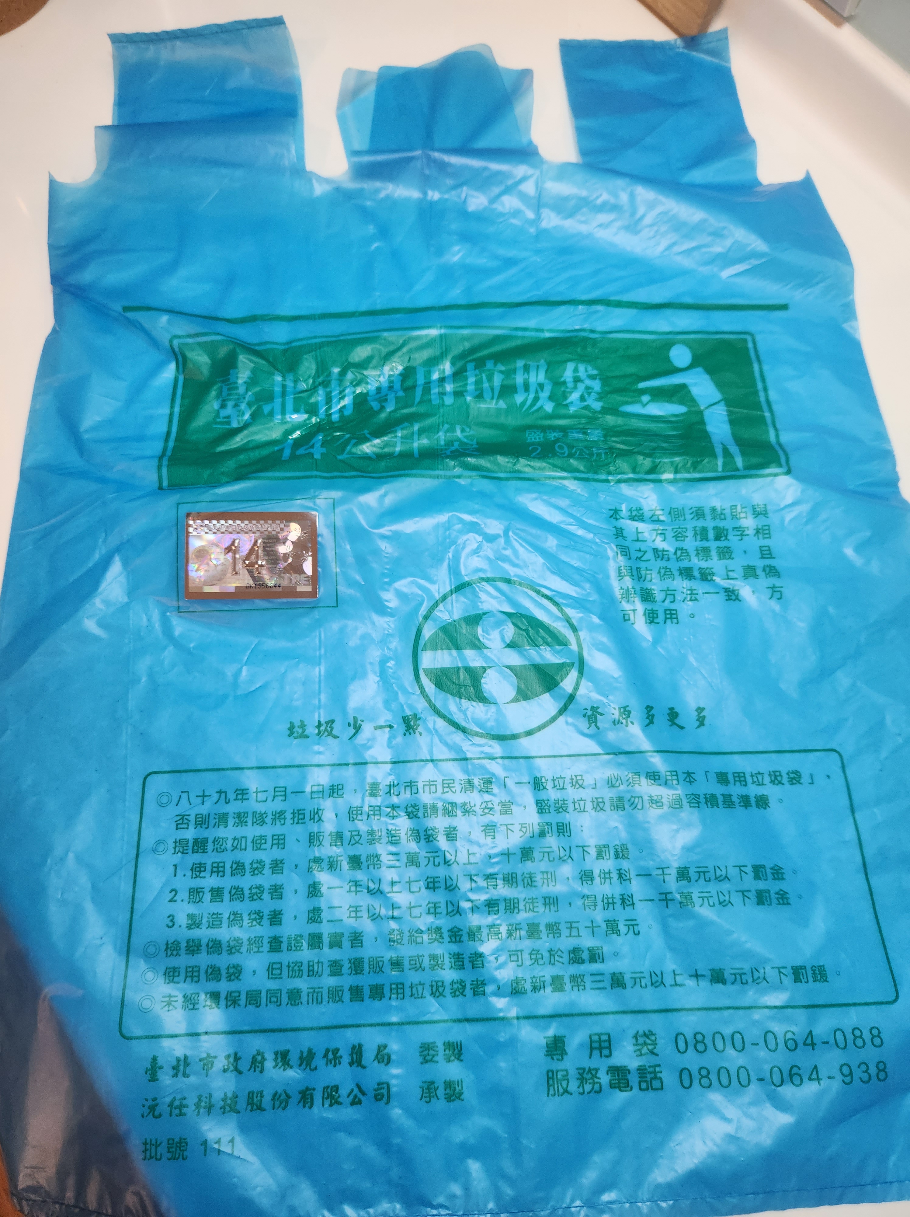Garbage Collection. Look, we’re glad that Taiwan tries to be eco-friendly but the garbage/recycling system is a quite annoying and complicated. First, there are very few public garbage cans, which isn’t that big of a deal because we know people often abuse them. So you bring your trash home, but it has to be separated into multiple categories: general trash, soft plastics, hard plastics and metals, paper, and compost. You just bought a drink in a paper cup with a plastic lid? You have to separate the paper and plastic into two bins. But if the paper cup is dirty, you also have to rinse it before putting it with the rest of the recycling. 😫 Additionally, there are special “government-approved” trash bags you have to purchase (pictured below) or else your garage will be rejected.